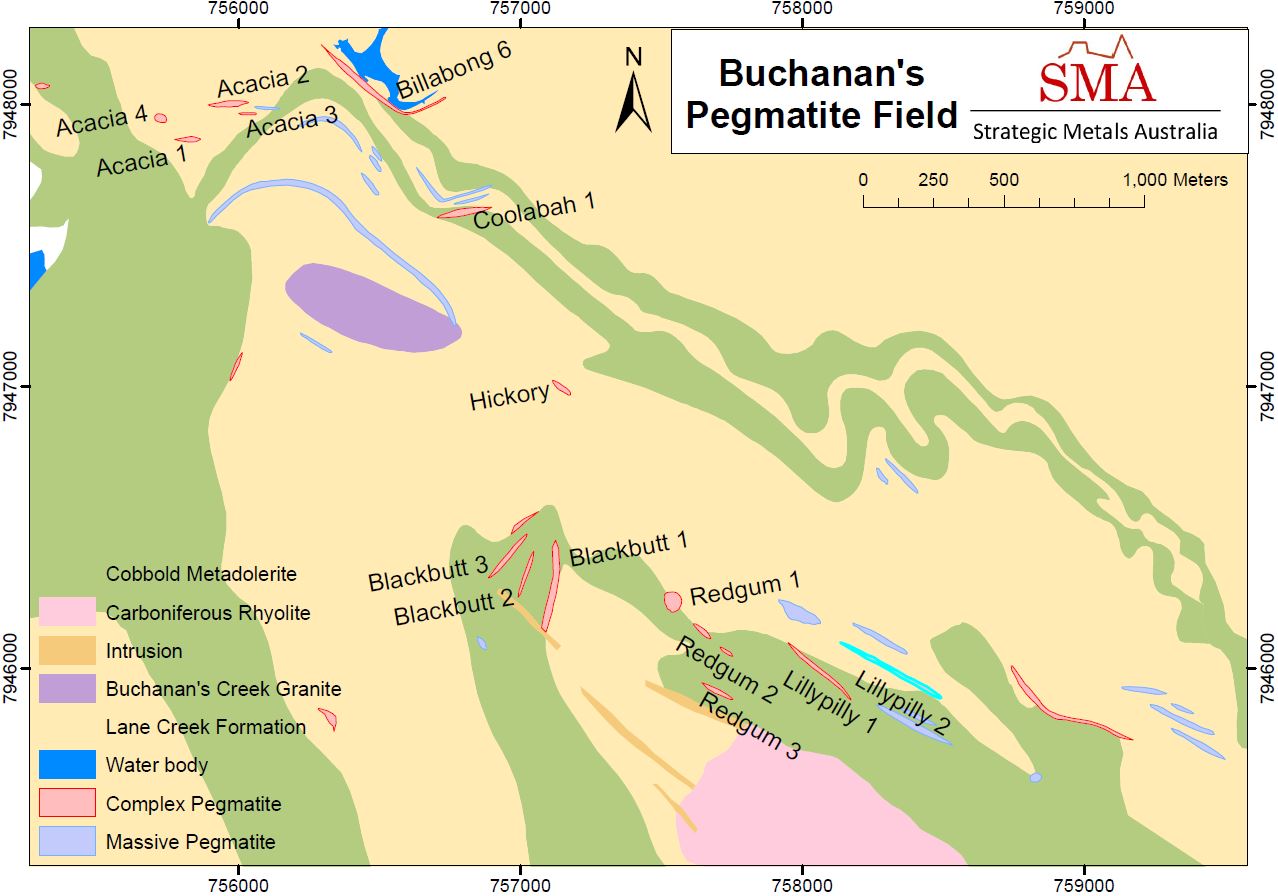 SMA’s tenement holding on the East Coast of Australia covers 230 km2, including a newly identified (greenfields) Buchanan’s Lithium Province. Significant values of Caesium and Rubidium occur with Lithium in this Province.